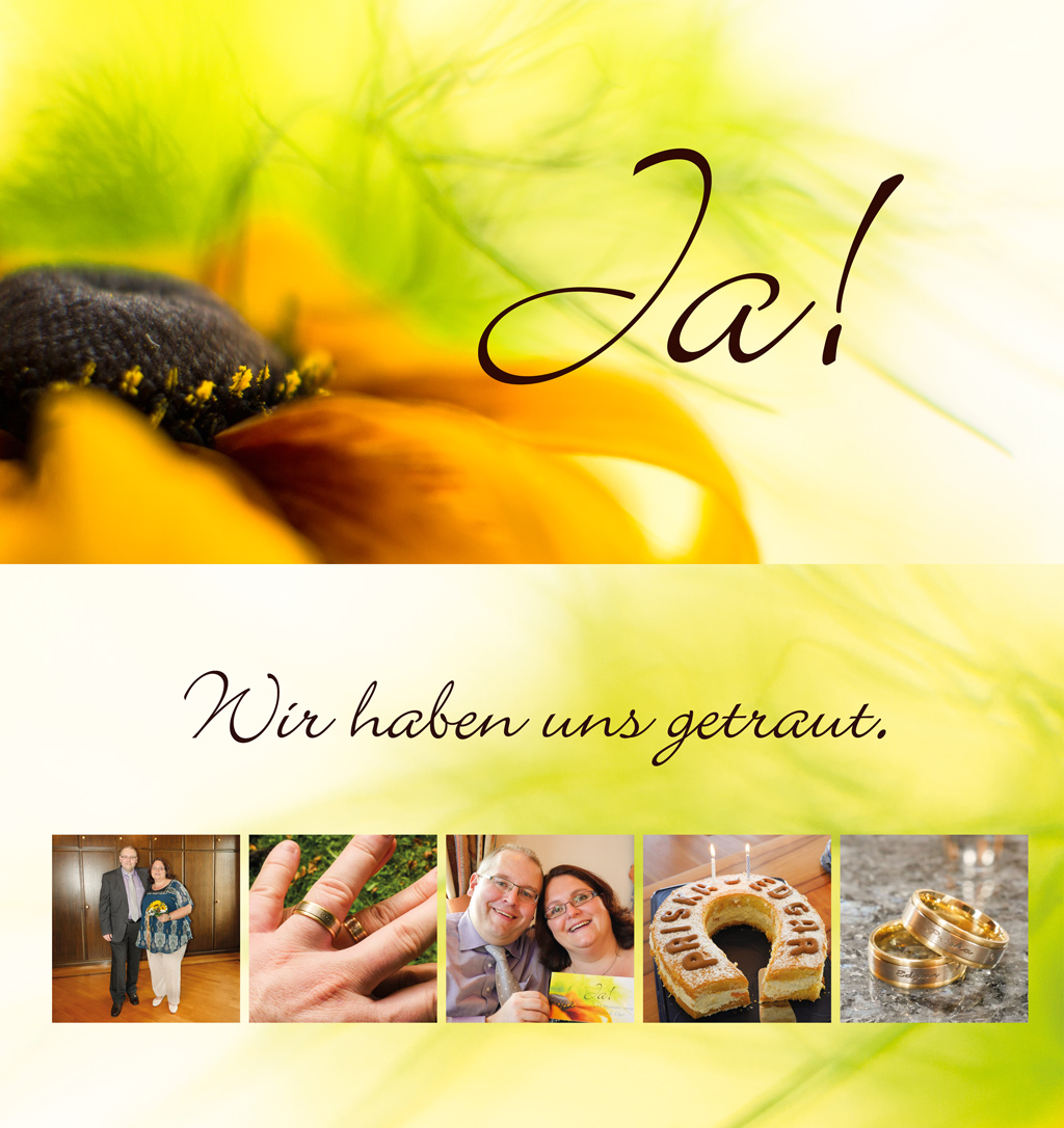 Wir haben uns am 26. September 2014 im kleinen Kreis auf dem Standesamt in Jettingen-Scheppach das Ja-Wort gegeben.
